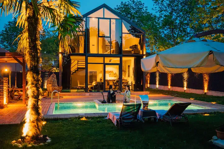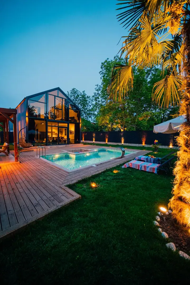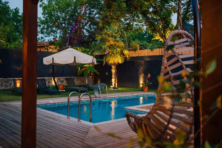 Ayrıca evinizin müstakil olarak kullanılabilen geniş bir bahçesi bulunmaktadır.Bahçemizde Havuz , veranda , barbekü ,oturma grubu , şömine , şemsiye ve şezlonglardan oluşan bir güneşlenme alanı bulunmaktadır.