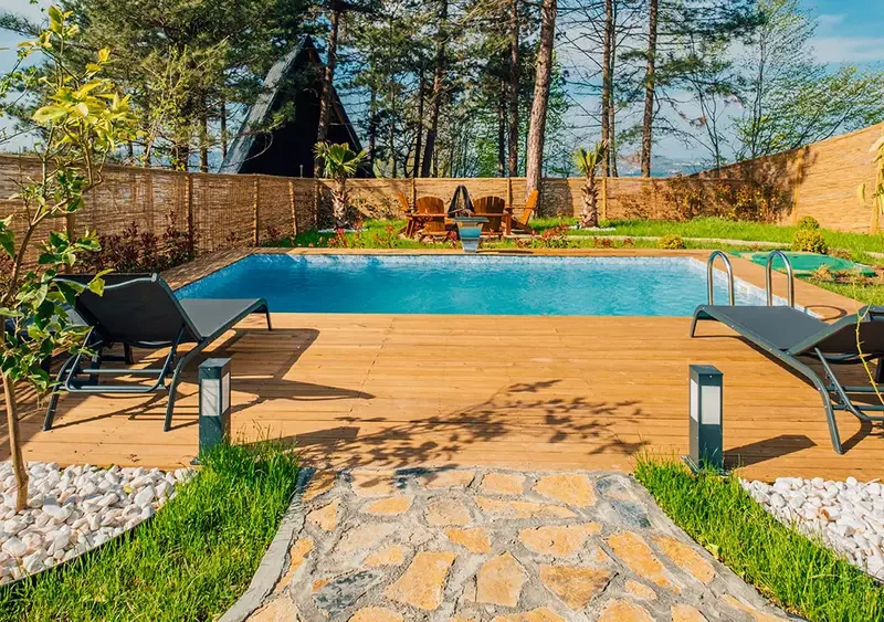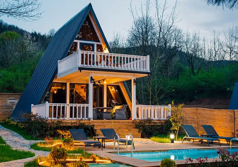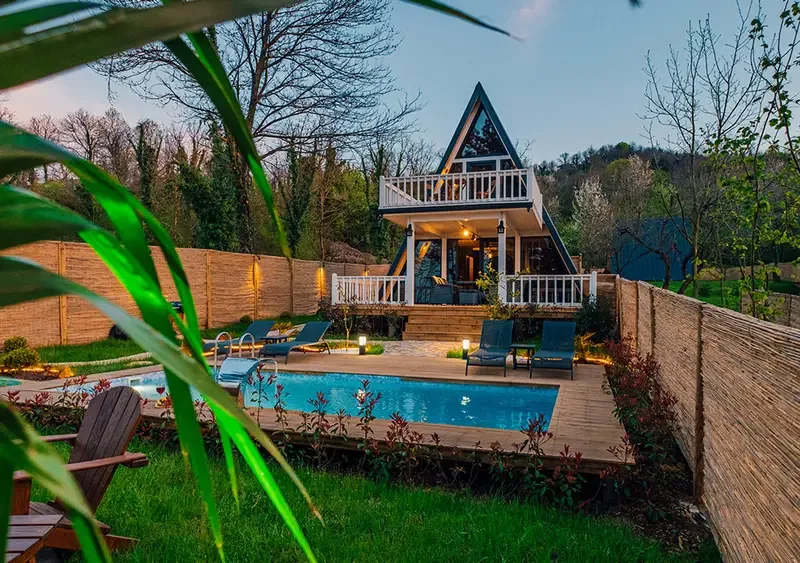 Doğa ile iç içe modern tesisimizde toplamda 8 adet Bungalov ev bulunmakta olup doğalgaz, banyo, oturma odası,tv,kişiye özel ısıtmalı havuz, Mutfak ,ücretiz otopark ve kahvaltı hizmetleri sunulmaktadır.